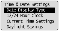 ] or [ ] to highlight a time format, and then press [OK].The time formats include the following: 12 Hour (AM/PM)
