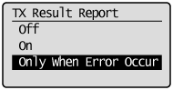 ] or [ ] to highlight <Only When Error Occurs>, and then press [OK]. |