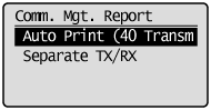 ] or [ ] to highlight <Auto Print (40 Transmissions)>, and then press [OK]. |