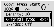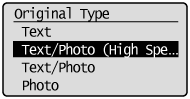 If <Density> is set to <Auto Density>, <Density> will be changed to <Manual Density> when you select <Text/Photo (High Speed)>, <Text/Photo> or <Photo>.