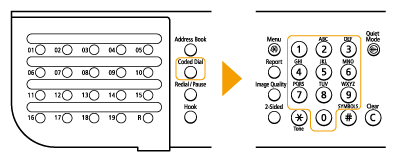 ] (Coded Dial), and then enter the three-digit registration number (001 to 200) with the numeric keys.