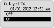 ] to highlight <Delayed TX>, and then press [OK].