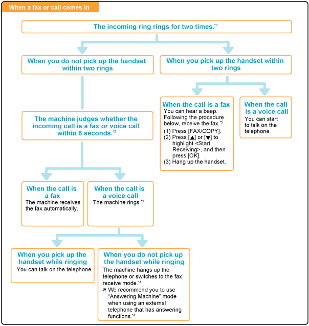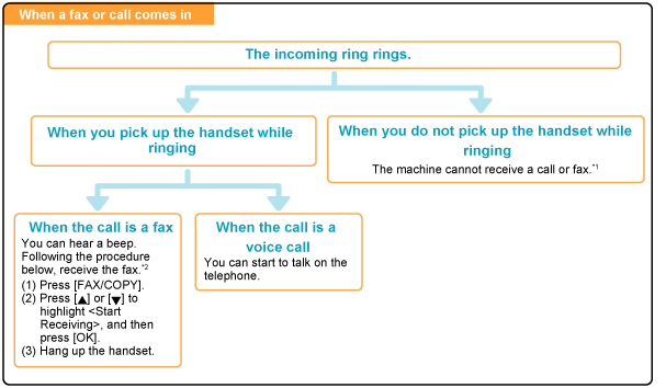 You can automatically receive a fax and answer an incoming call by picking up the handset.