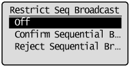 ] to highlight <Restrict Sequential Broadcast>, and then press [OK].