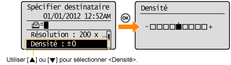 Pour obtenir des textes et des lignes d'une grande netteté lors d'une numérisation, réglez le curseur à un niveau adapté sur l'échelle <+>. Ce réglage convient particulièrement à la reproduction de documents avec des éléments fins, comme les tirages de plan ou les dessins au crayon.
