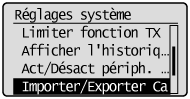 ] pour sélectionner <Importer/Exporter Carnet d'adresses>, puis appuyer sur [OK].