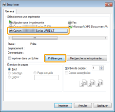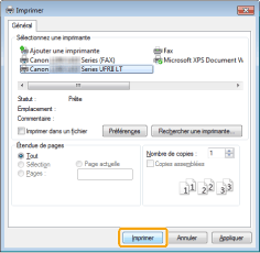 (Périphériques) -> l’imprimante que vous utilisez -> [Imprimer]. En imprimant ainsi, seules certaines fonctions d'impression vous sont proposées. |