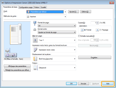 L'affichage peut varier en fonction du système d'exploitation, ainsi que du type et de la version du pilote d'impression.