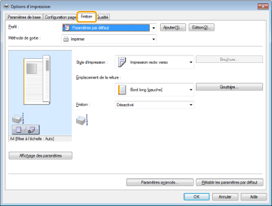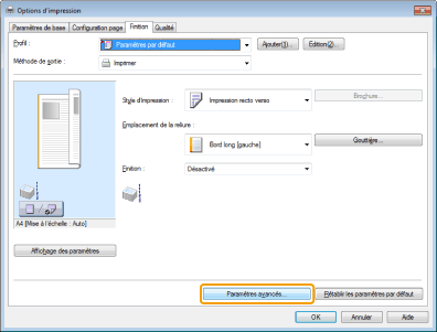 Pour en savoir plus sur l'accès à l'écran du pilote d'imprimante, voir "Impression" et "Configuration des réglages d'impression par défaut".
