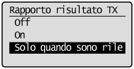 ] per selezionare <Rapporto risultato TX>, quindi premere [OK].