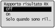 ] per selezionare <Rapporto risultato RX>, quindi premere [OK].