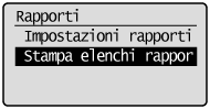 ] per selezionare <Stampa elenchi rapporti>, quindi premere [OK].