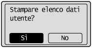 ] per selezionare <Elenco dati utente>, quindi premere [OK].