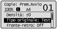 Se <Densità> è impostata su <Densità automatica>, <Densità> verrà cambiata in <Densità manuale> quando si seleziona <Testo/Foto (Alta velocità)>, <Testo/Foto> oppure <Foto>.