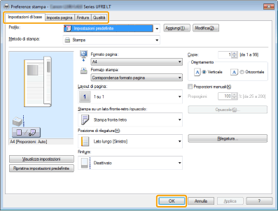 Configurare le impostazioni desiderate nella schermata del driver della stampante e fare clic su [OK].