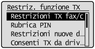 ] per selezionare <Restrizioni TX fax/chiamate telefoniche>, quindi premere [OK].