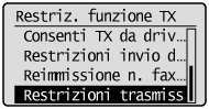 ] per selezionare <Restrizioni funzione TX>, quindi premere [OK].