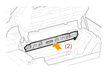 Allineare le sporgenze (A) presenti su ogni lato della cartuccia del toner alle apposite guide che si trovano sui lati della macchina. Far scorrere la cartuccia del toner nella macchina finché non raggiunge la sua parte posteriore.