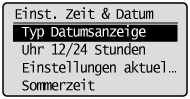 ] oder [ ], um ein Zeitformat hervorzuheben, und drücken Sie dann [OK].Folgende Zeitformate sind verfügbar: 12 Stunden (AM/PM)