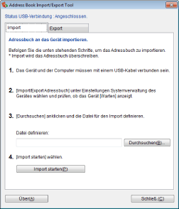 Folgen Sie den Bildschirmanweisungen auf der Registerkarte [Importieren] des Import/Export-Werkzeugs im Adressbuch.