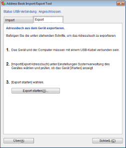 Folgen Sie den Bildschirmanweisungen auf der Registerkarte [Exportieren] des Import/Export-Werkzeugs im Adressbuch.