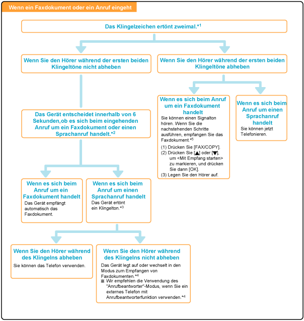 Zur Auswahl des gewünschten Empfangsmodus sehen Sie sich die folgenden Ablaufdiagramme an.