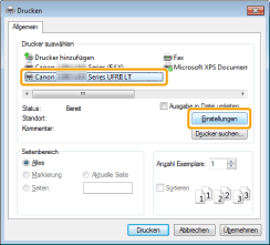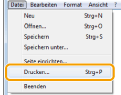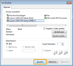 (Geräte) -> verwendeter Drucker -> [Drucken]. Beim Drucken mit dieser Methode können nur einige Druckfunktionen festgelegt werden. |