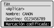 ] o [ ] para resaltar <Marcación codificada> y, a continuación, pulse [OK].![]() |
