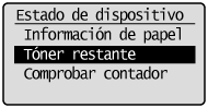 ] para resaltar <Tóner restante> y, a continuación, pulse [OK].