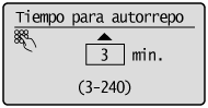 Ajustes de tiempo para autorreposo:Podrá definir el tiempo para autorreposo entre <3> y <240> minutos, en intervalos de un minuto. El valor predeterminado es <3> minutos.