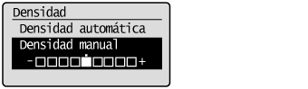 ] o [ ] para ajustar <Densidad manual>, cuando se seleccione <Densidad automática> o <Densidad manual>. |