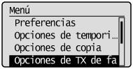 ] para resaltar <Opciones de TX de fax> y, a continuación, pulse [OK].