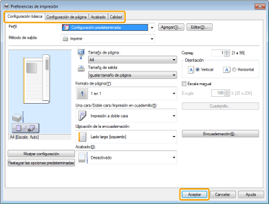 La pantalla podría variar según el sistema operativo, y también en función del tipo y la versión del controlador de impresora.