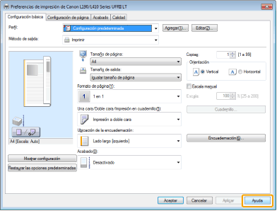 La pantalla podría variar según el sistema operativo, y también en función del tipo y la versión del controlador de impresora.