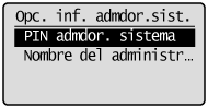 ] o [ ] para resaltar <PIN admdor. sistema> y, a continuación, pulse [OK]. ![]() |