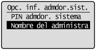 ] o [ ] para resaltar <Nombre del administrador del sistema> y, a continuación, pulse [OK]. ![]() |