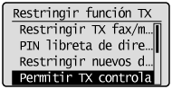 ] para resaltar <Restringir función de TX> y, a continuación, pulse [OK].
