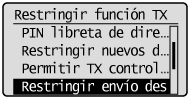 ] para resaltar <Restringir función de TX> y, a continuación, pulse [OK].