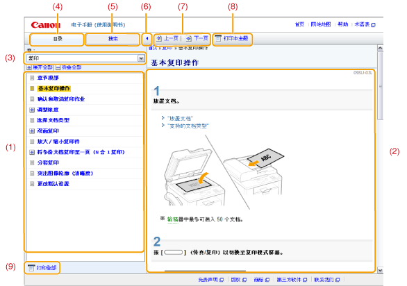 显示所选内容的说明。 在“主题页面”的左上角会显示所选主题的当前位置。 单击链接可以移动至上一级别。