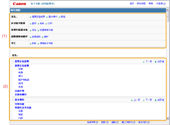 电子手册的屏幕布局