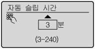자동 절전 시간 설정:<3> ~ <240>분 사이에서 1분 간격으로 자동 절전 시간을 설정할 수 있습니다. 기본 설정은 <3>분입니다.
