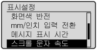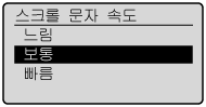 ]을 눌러 <스크롤 문자 속도>를 선택한 후 [OK]를 누릅니다.