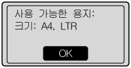 용지가 용지 공급원에 올려져 있는지 확인한 후 [OK]를 누릅니다.
