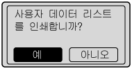 사용자 데이터 목록 인쇄를 지정합니다.