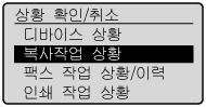 ]을 눌러 <복사작업 상황>을 선택한 후 [OK]를 누릅니다.