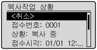 ] (상황 확인/취소)를 사용하여 복사 작업 확인 및 취소