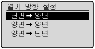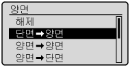 ] 또는 [ ]을 눌러 <단면->양면>을 선택한 후 [OK]를 누릅니다. ![]() |
