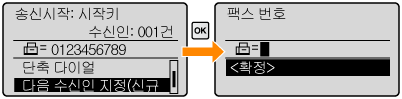 (2) 숫자 키를 사용하여 다음 수신처를 지정한 후 [OK]를 누르세요.