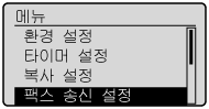 ]을 눌러 <팩스 송신 설정>을 선택한 후 [OK]를 누릅니다.