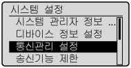 ]을 눌러 <통신관리 설정>을 선택한 후 [OK]를 누릅니다.